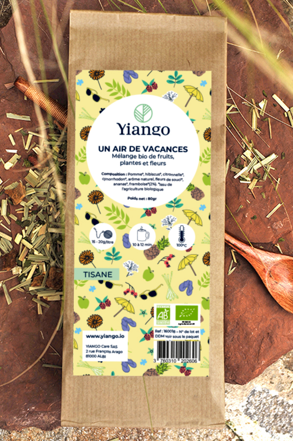 Pomme, hibiscus, citronnelle, cynorrhodon, arôme naturel, fleurs de soucis